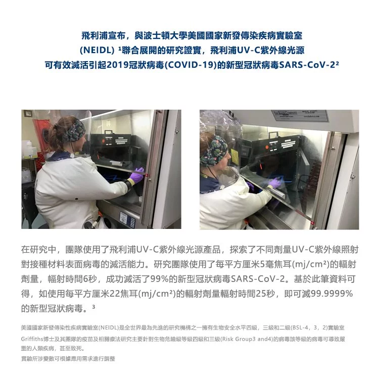 波士頓大學證實昕諾飛UV-C紫外線光源產品,可滅活99.9999%的新型冠狀病毒